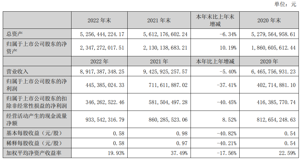 4月27日,兔宝宝(002043.SZ)发布2022年年度报告。据报告,2022 年兔宝宝营业收入89.17亿元,同比降5.4%;归属于上市公司股东的净利润4.45亿元,同比降37.41%。