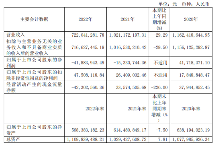 4月27日,中源家居(603709)近日发布2022年年度报告,报告期内公司实现营业收入722,041,281.78元,同比下滑29.29%;归属于上市公司股东的净利润-41,883,943.49元,较上年同期亏损增加。