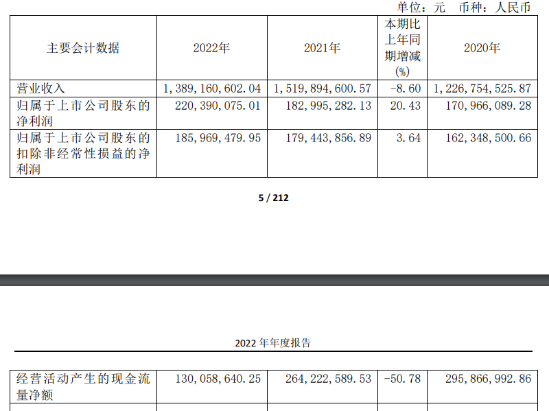 据报告,2022年度梦天家居实现营业收入13.89亿元,较上年同期降低8.6%;实现归属于上市公司股东的净利润为2.2亿元,较上年同期增长20.43%,实现归属于上市公司股东的扣除非经常性损益的净利润为1.86亿元,较上年同期增长3.64%。