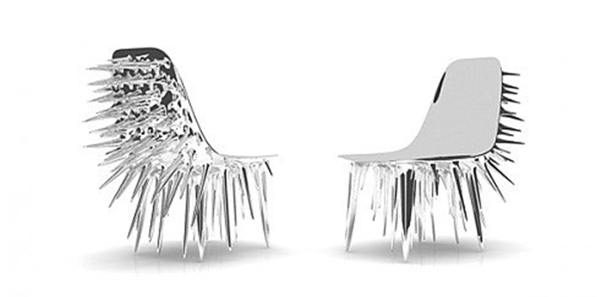 这把椅子最吸引眼球的地方在于椅子的后部和下部,像是一个长满刺的刺猬,好像一不小心就会伤到坐在椅子上的人。但与此形成鲜明对比的是,这把椅子有一个均匀、平滑的座位和靠背。或许,你不喜欢它,但你肯定会对它指手画脚,评头论足。