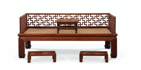 △清十八/十九世纪黄花梨罗汉床,黄花梨炕桌及红木脚踏 估价:50,000 – 70,000美元