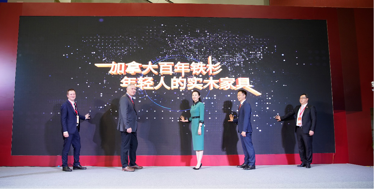 发布会隆重邀请世界家具联合会秘书长、亚洲家具联合会副会长兼秘书长、中国家具协会副理事长兼秘书长屠祺女士,加拿大木业中国执行总裁黄华力先生,加拿大木业市场推广高级总监王笑竹先生,加拿大驻广州总领事馆总领事Philippe Rheault欧阳飞先生和加华珠三角商会董事会主席Rob Turnbull先生共同启动加拿大铁杉的发布仪式,将“加拿大百年铁杉,年轻人的实木家具”正式推向中国家具市场。