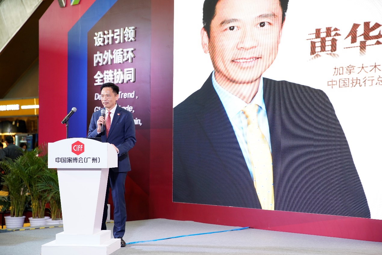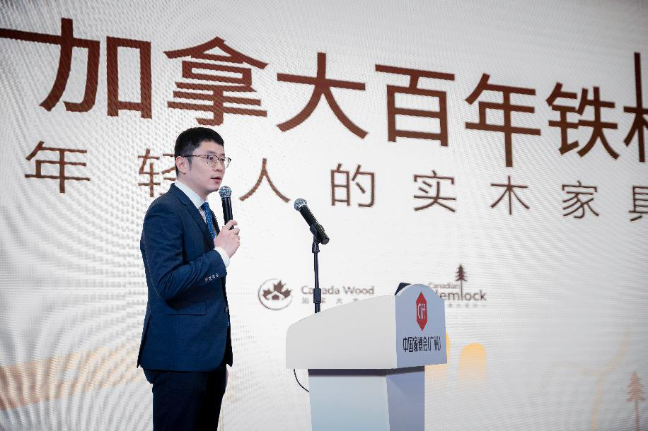 随后加拿大木业中国执行总裁黄华力先生致辞,他对中国家具协会和加拿大驻广州总领事馆的大力支持表示感谢。加拿大是世界上主要木材出口国,为全球消费者提供了优质的木材。加拿大铁杉作为实木家具原材料,绿色环保,契合多种设计风格,非常贴合年轻人的品位。希望通过加拿大铁杉实木家具,把加拿大的森林带到中国年轻人的家里。
