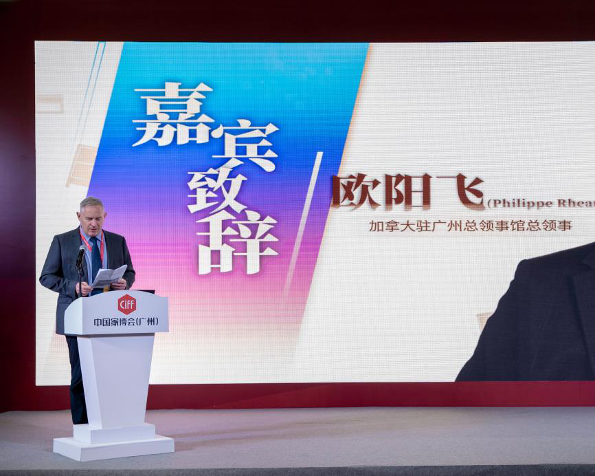 此次发布会荣幸地得到了加拿大驻广州总领事馆的大力支持,总领事Philippe Rheault欧阳飞先生出席并致辞。他谈到,中国是世界上最大的木材进口国也是加拿大木材第二大出口市场,中国家具企业越来越重视绿色、环保、低碳理念。加拿大铁杉品质有保证,性价比高,源自环保可持续管理的林区,相信会是家具企业优选的材料。希望加拿大木业和中国家具协会的合作能够进一步推进中加两国的产业合作。