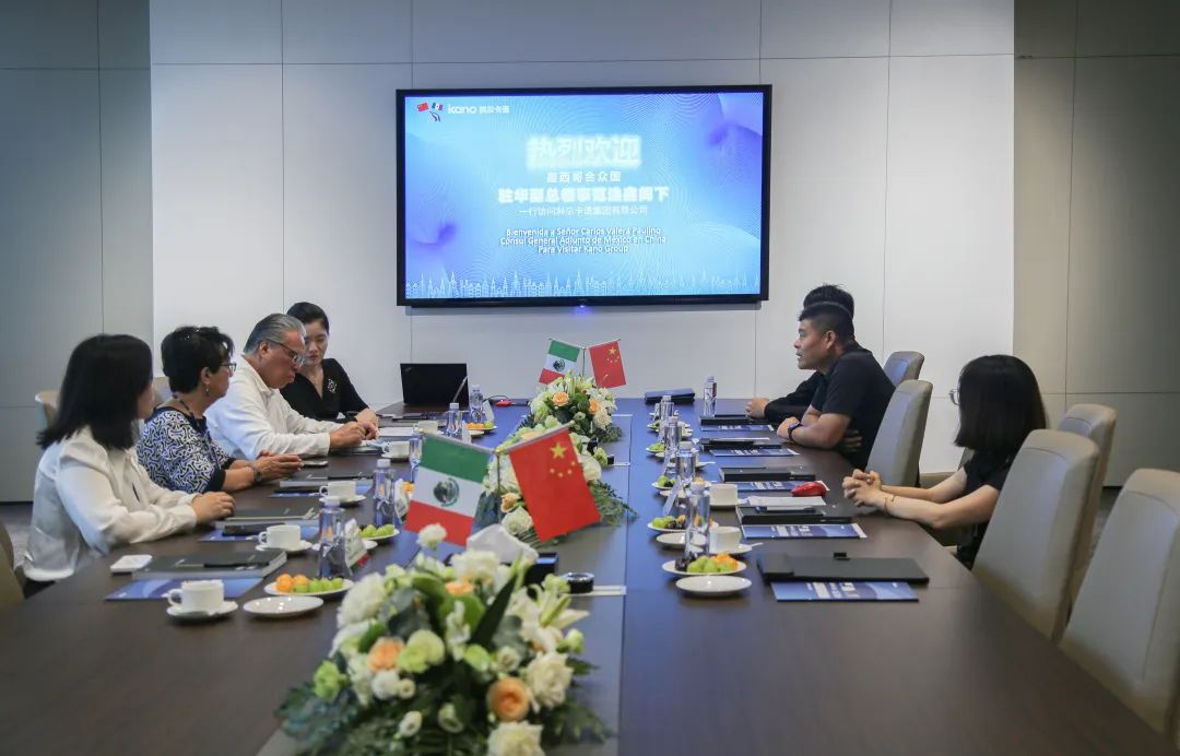 8月11日,墨西哥合众国驻沪副总领事范逸鑫阁下一行莅临科尔卡诺,参观科尔卡诺总部,体验科尔卡诺产品。