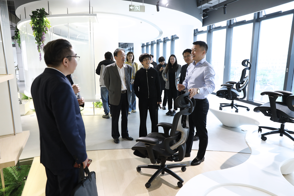 总编团在杜总的详细介绍下,现场参观体验恒林产品。恒林人体工学椅,经历25年沉淀,在研发设计与生产制造两个重要端口都有着强力的技术支撑。