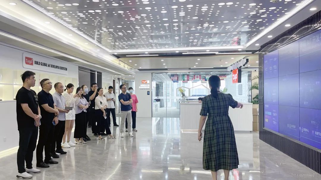 首先,协会与企业代表一行参观涂鸦展厅,涂鸦智能高级市场经理林鹭鹭做相关介绍讲解。
