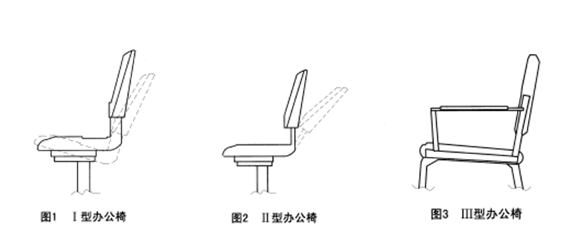 标准按调节方式对办公椅进行了分类,分为Ⅰ办公椅、Ⅱ型办办公椅和三型办公椅。其中Ⅰ型办公椅为椅座和椅背角度均可调节的办公椅;Ⅱ型办公椅为只有椅背角度可调节的办公椅;Ⅲ型办公椅是椅背、座面、扶手相对位置、角度均不可调节的办公椅。