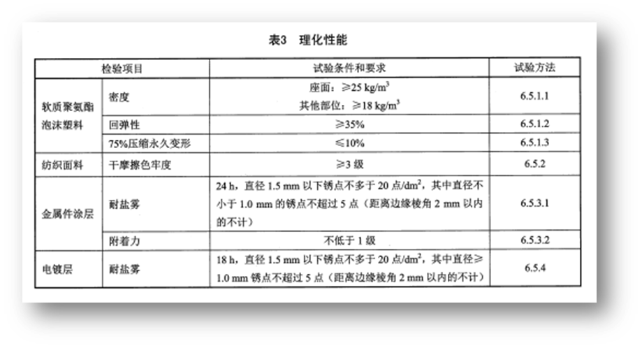 标准在第5章要求中,详细规定了办公椅的主要尺寸、形状和位置公差、和外观要求。并且规定了产品中软质聚氨酯泡沫塑料、纺织面料、金属件涂层、电镀层的理化性能,给出了需要检验的项目、实验条件、要求和试验方法。