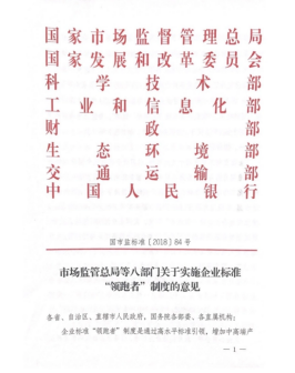 企业标准“领跑者”制度是通过高水平标准引领、增加中高端产品和服务有效供给,支撑高质量发展的鼓励性政策,对深化标准化工作改革、推动经济新旧动能转换、供给侧结构性改革和培育一批具有创新能力的排头兵企业具有重要意义。