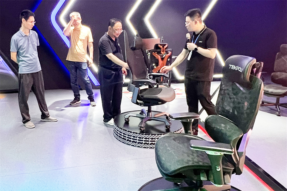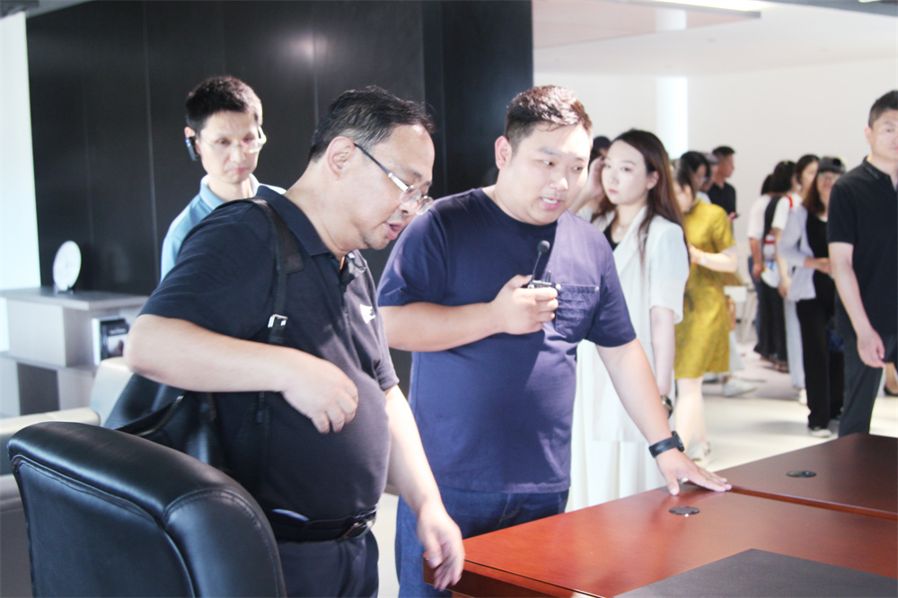 接着,考察团一行来到永艺家具股份有限公司,国内渠道营销中心总监张栋梁热情接待并对展厅产品进行讲解。考察团成员们对展厅中的产品都进行了认真的试坐亲身体验了这些家具产品的舒适度与实用性。同时,他们还结合自身的专业知识与行业经验,助力企业进一步优化产品设计,提升市场竞争力。