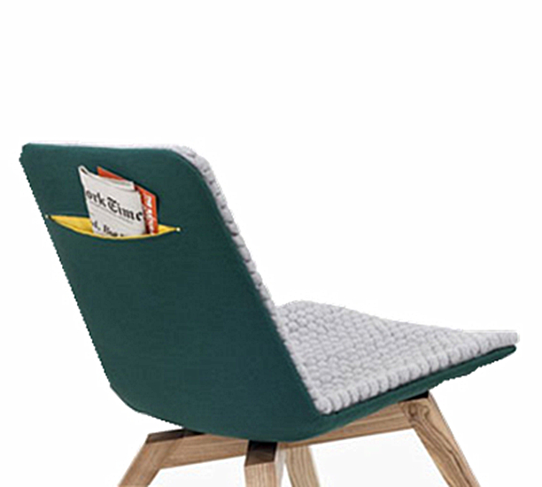 Lounge椅外观上极具吸引力,而在功能设计上上也很强大,在灰色毛毡之下的椅子坐面是宝石绿的衬垫,在椅子背面还有黄色内衬的拉链口袋,可以放置书籍杂志等物品。休闲椅底座由山毛榉木制成,椅腿采用的则是更为坚固的白蜡木。而这款休闲椅更吸引人的一点在于,其制作过程使用任何合成剂,坐垫更是易于拆装清洗。