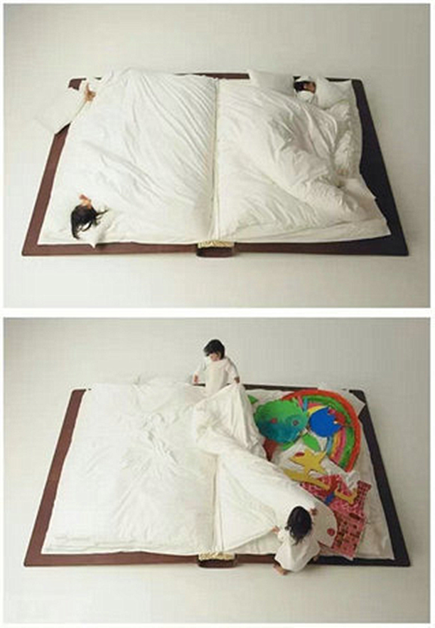 有些爸妈会在孩子睡前说故事,孩子们听着听着便睡去了。此时,还有张故事书床,可以将故事延续下去……真的能把棉被当做书页一样一页一页的翻,实在太可爱了!