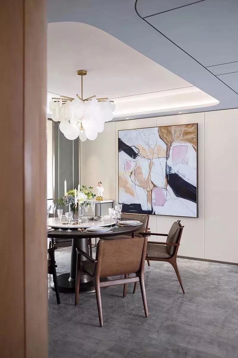 在轻奢风格中,设计师往往采用经典的黑白灰、暖调奶咖色、米杏色与原木色,来呈现优雅大气的空间格调,在视觉上取得平衡与统一。