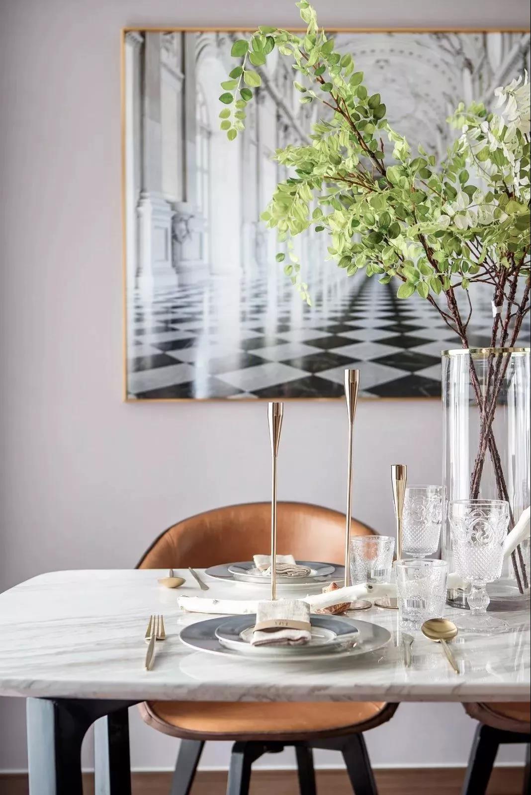 大理石与黄铜元素的搭配,也堪称画龙点睛之笔。一个冰冷自傲、贵气逼人,一个复古精致、温情满满,两者的结合成就了一种很高级的设计方式,不仅可以令整个家增色不少,居住品质又将提升到新的高度!