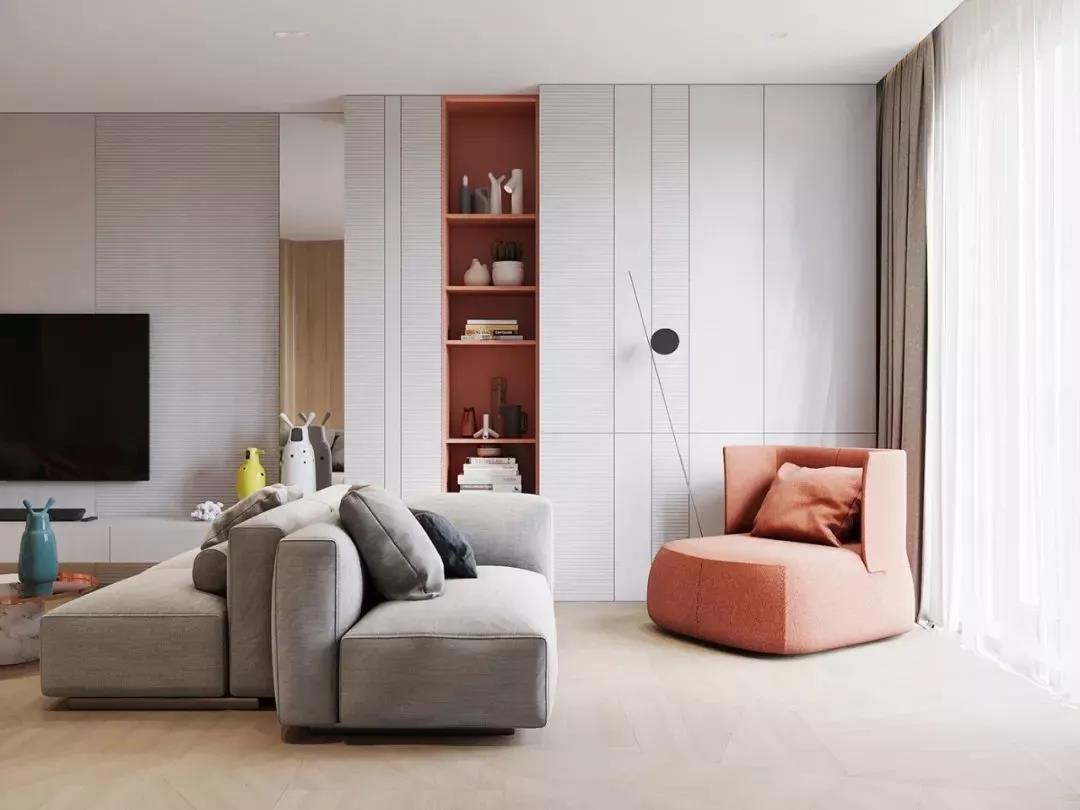 成套的大沙发既占地方,又笨重沉闷。不如选择不同材质,不同颜色的小型沙发搭配。打破传统的摆放方式,可以面对面、可以围合式,让你的客厅和谐、有趣。