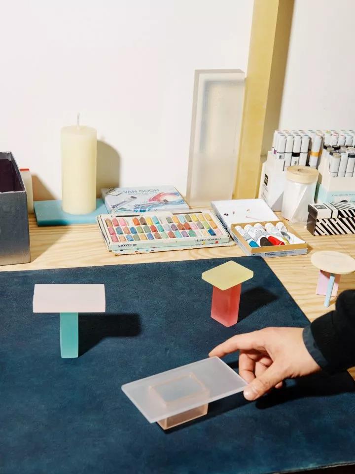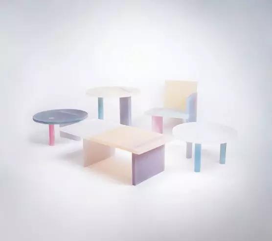 他通过柔和色彩的树脂,模仿光线和幽灵般的幻影,铸造出低调、安静而又美好的家具系列。