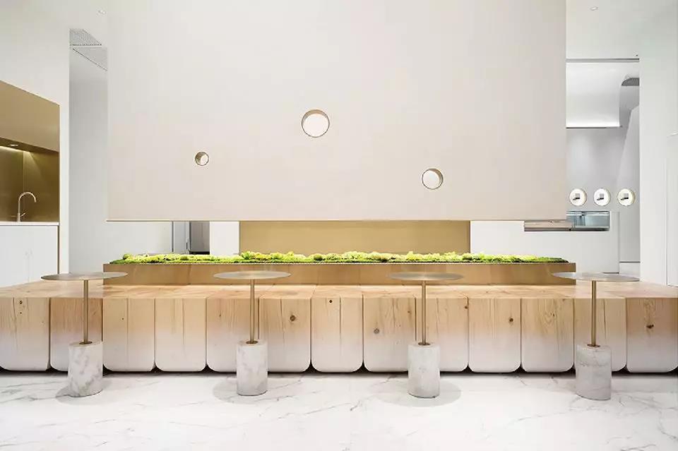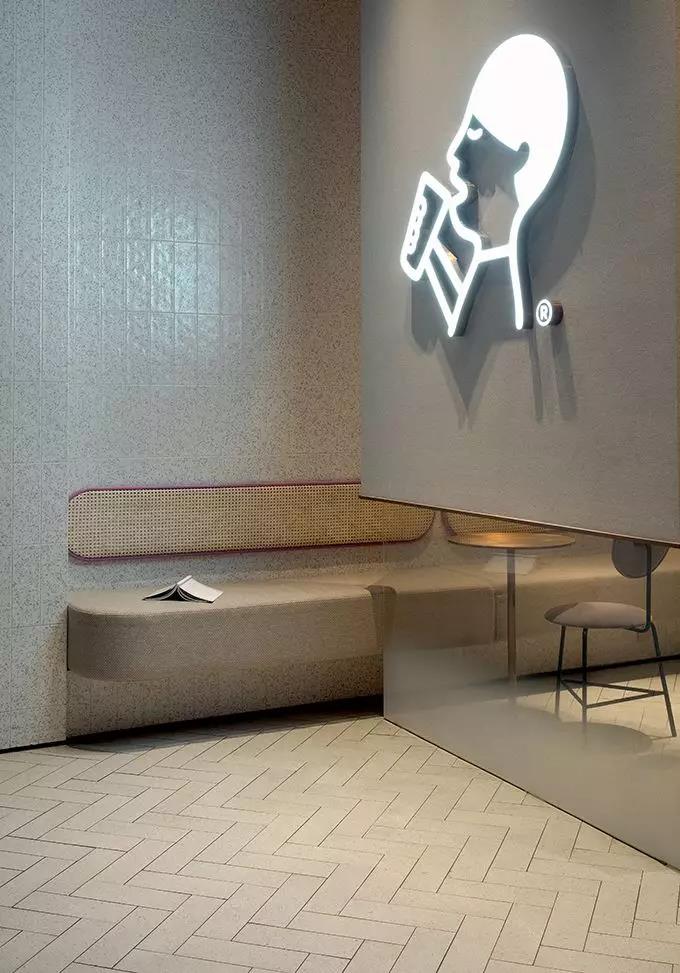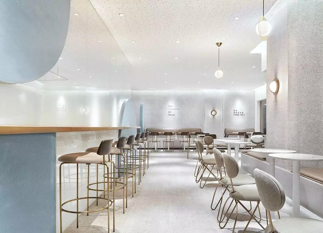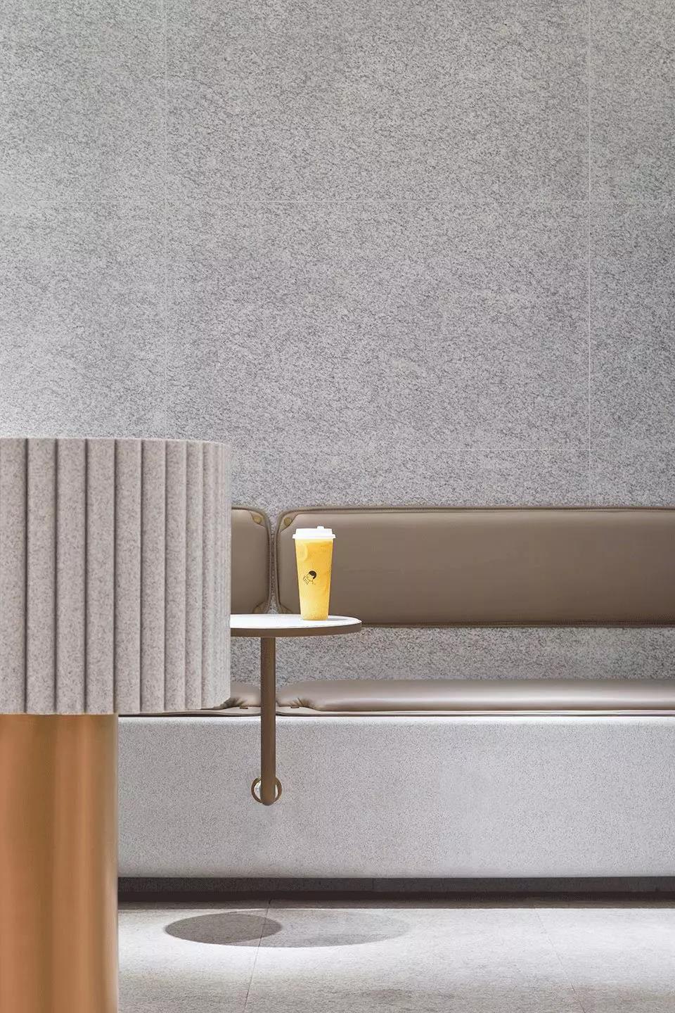 白色渐变油漆结合定制杉木座椅,同样源于对奶盖的联想