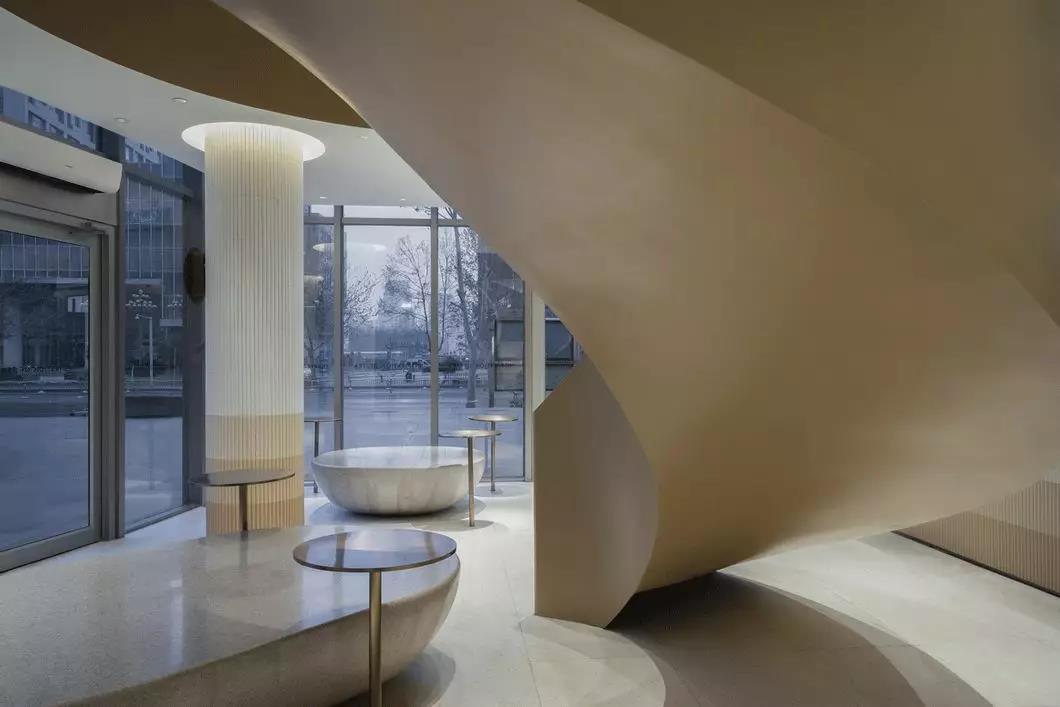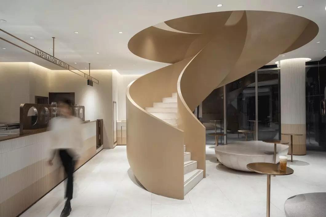 旋转楼梯是空间中的主角,人们在店内的活动围绕着它进行,它也成为顾客们喜爱的拍照背景甚至到店原因。