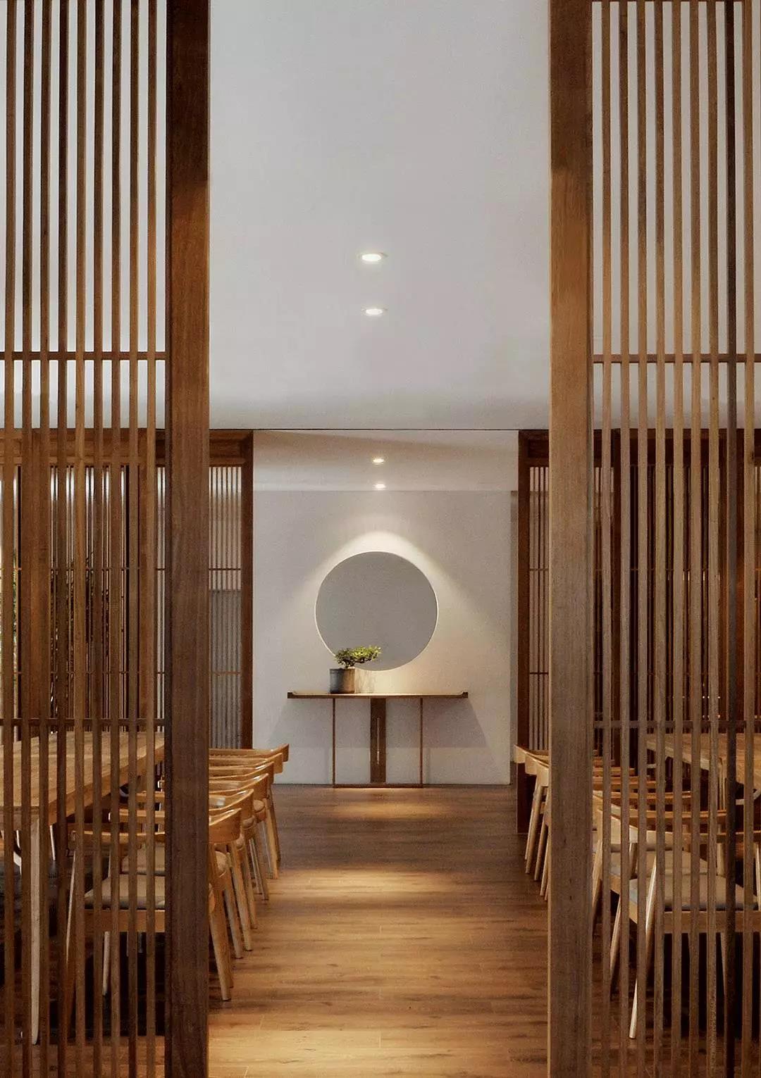 果然·素的内部装饰,采用了大量的木质元素和留白,体现了空间简洁之美,纯净的白色和天然的木色,衬托出大道至简的禅宗精神。