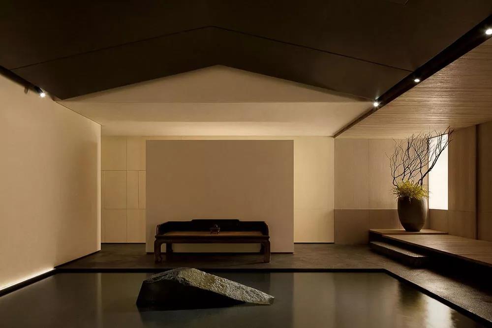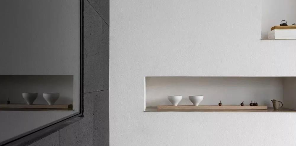 中国文化里讲究留白,但是留白並不代表什么都没有,而是留下充分的想象空间给居住之人。大片的白墙白地砖,穿插着竹子、小景、木桌等传统的中式风格搭配。在现代化的空间里,硬生生的营造出了新中式的极简之美。