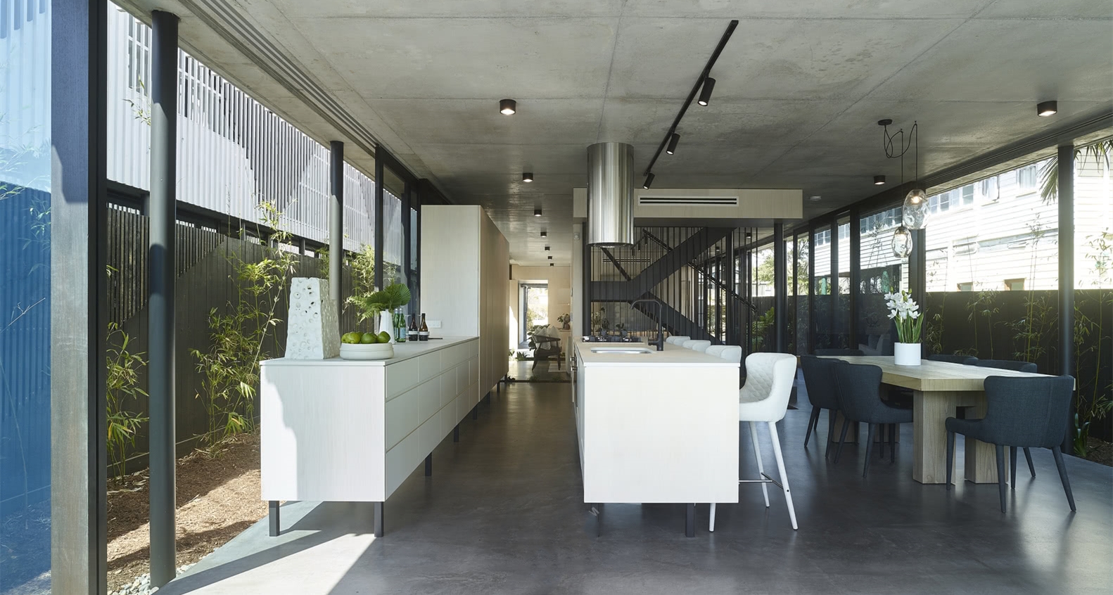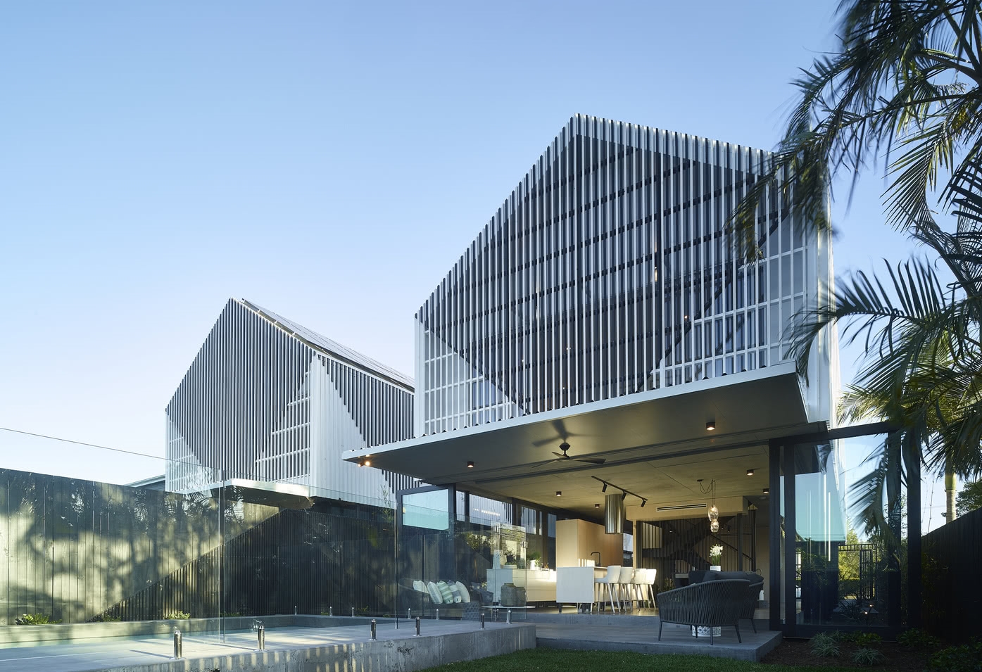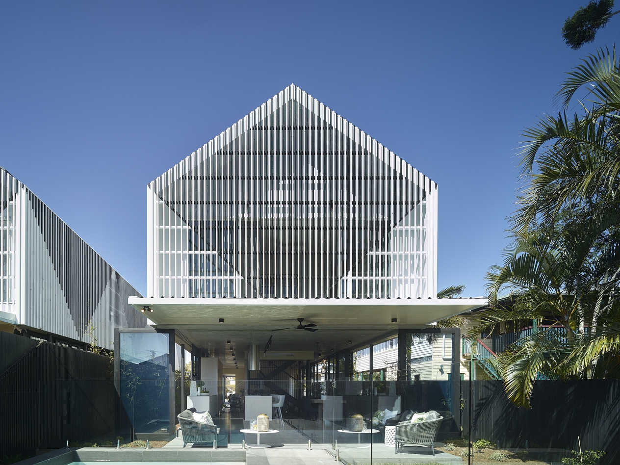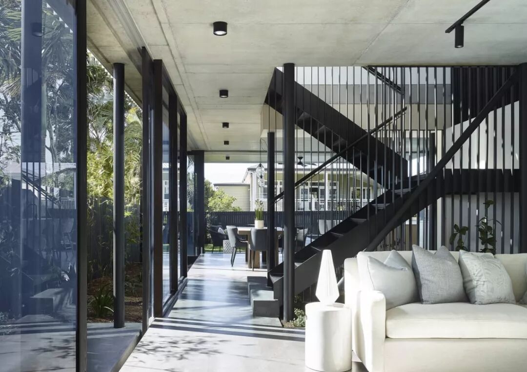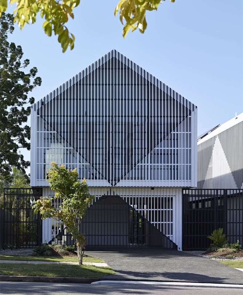 该别墅设计项目令人印象深刻的,用板条遮挡的立面证明了这一点。“我们决心为居民和更广泛的社区提供能够与街景交融的住所。”简单的山墙屋顶形式和可居住的空间,都对周围社区和布里斯班附近的建筑起到了补充作用。