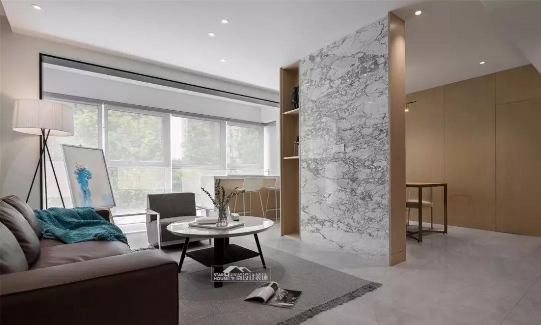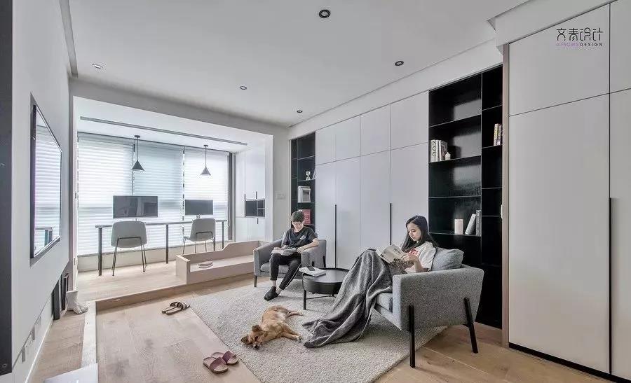 如果没有小孩要照顾,那不如把客厅变成自己的个人工作室,摆放书桌和娱乐设施,工作累的时候就可以休息一会