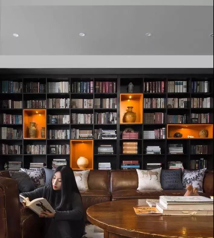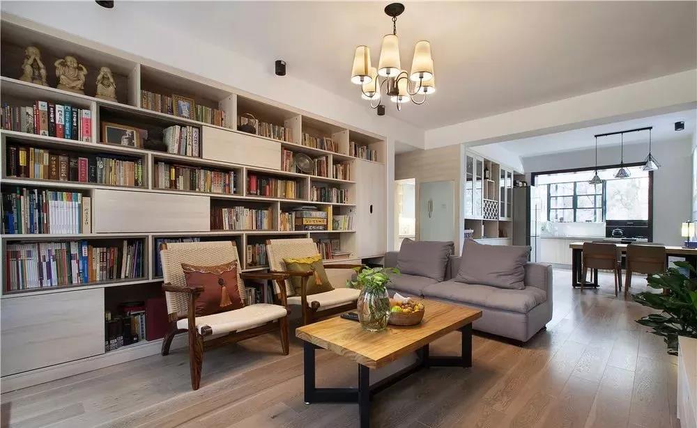 对于平时有阅读习惯的人来说,把客厅布置成图书馆也是不错的选择,大多数人们都会选择在客厅设置一个大书架。