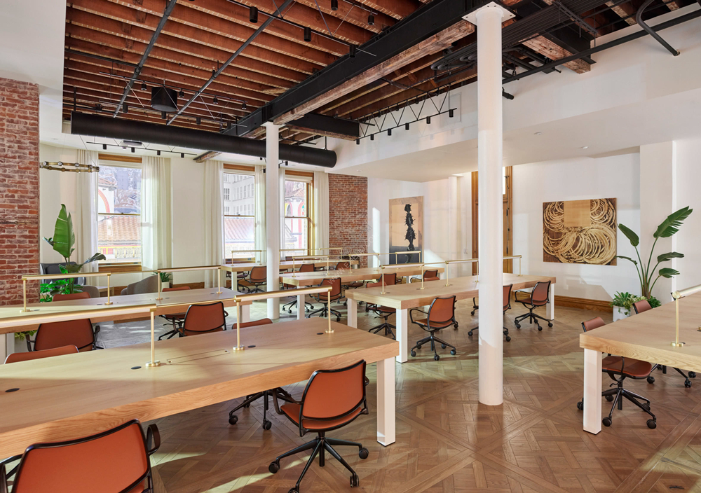 该空间占地2,323平方米,提供公用工作区,私人工作室,会议室,电话亭,休息室,健康室以及咖啡厅和酒吧。该办公室占据了布拉德伯里大楼的整个第二层,这座五层楼的建筑可以追溯到1893年。该建筑由矿业大亨Lewis L Bradbury委托建造,由制图员George Wyman设计,该建筑师借鉴了建筑师Sumner Hunt的初步计划。