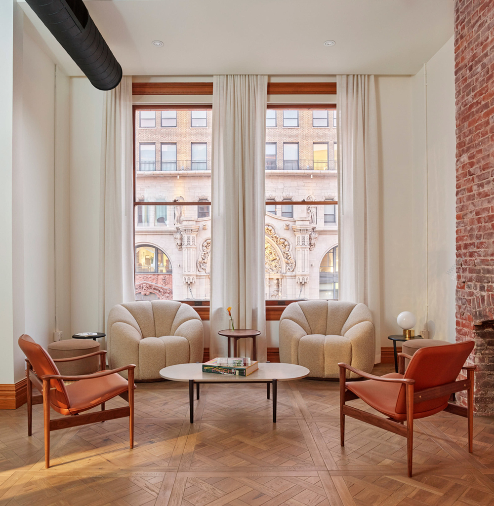 “柔和而华丽的装饰”融入了NeueHouse最新的共同办公地点,该办公空间设计占据了洛杉矶市中心1890年代建筑的整个楼层。
