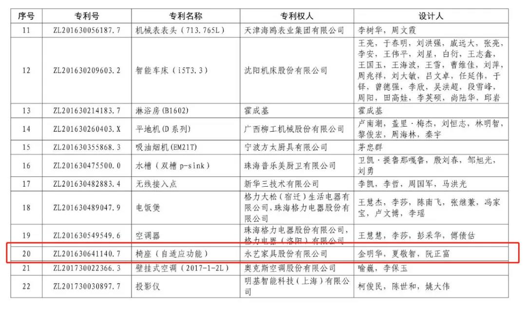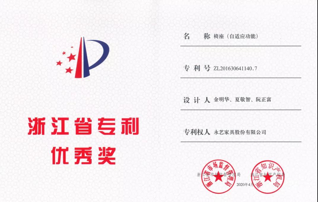 近日,国家知识产权局发布了第二十一届中国专利奖授奖决定,我省家具企业中永艺股份椅座(自适应功能)专利荣获第二十一届中国外观设计优秀奖。
