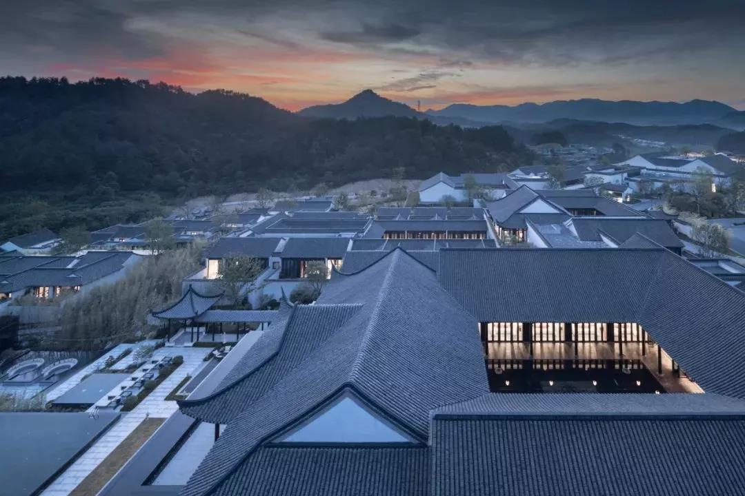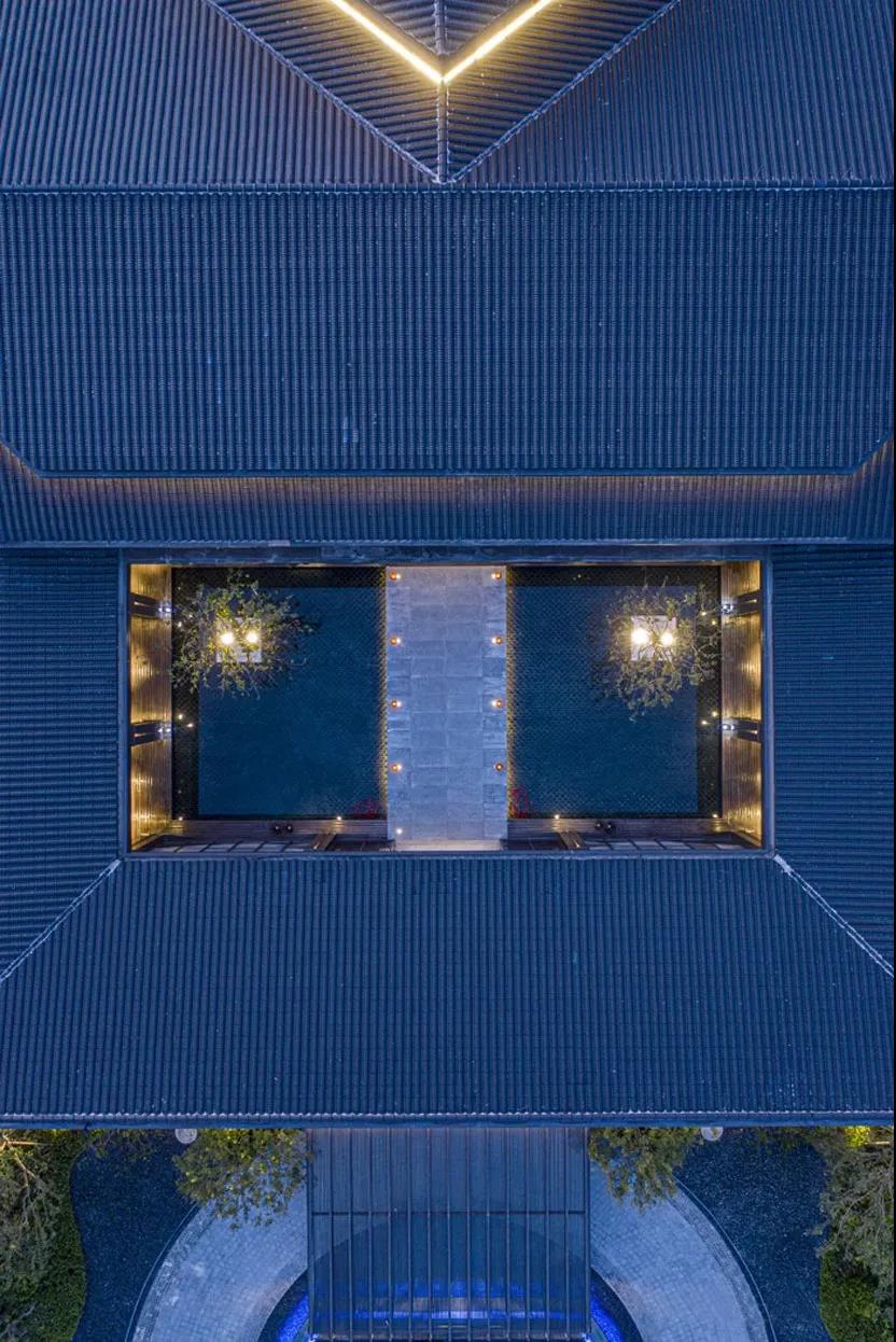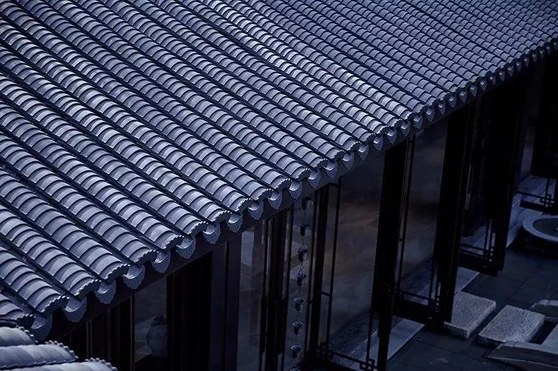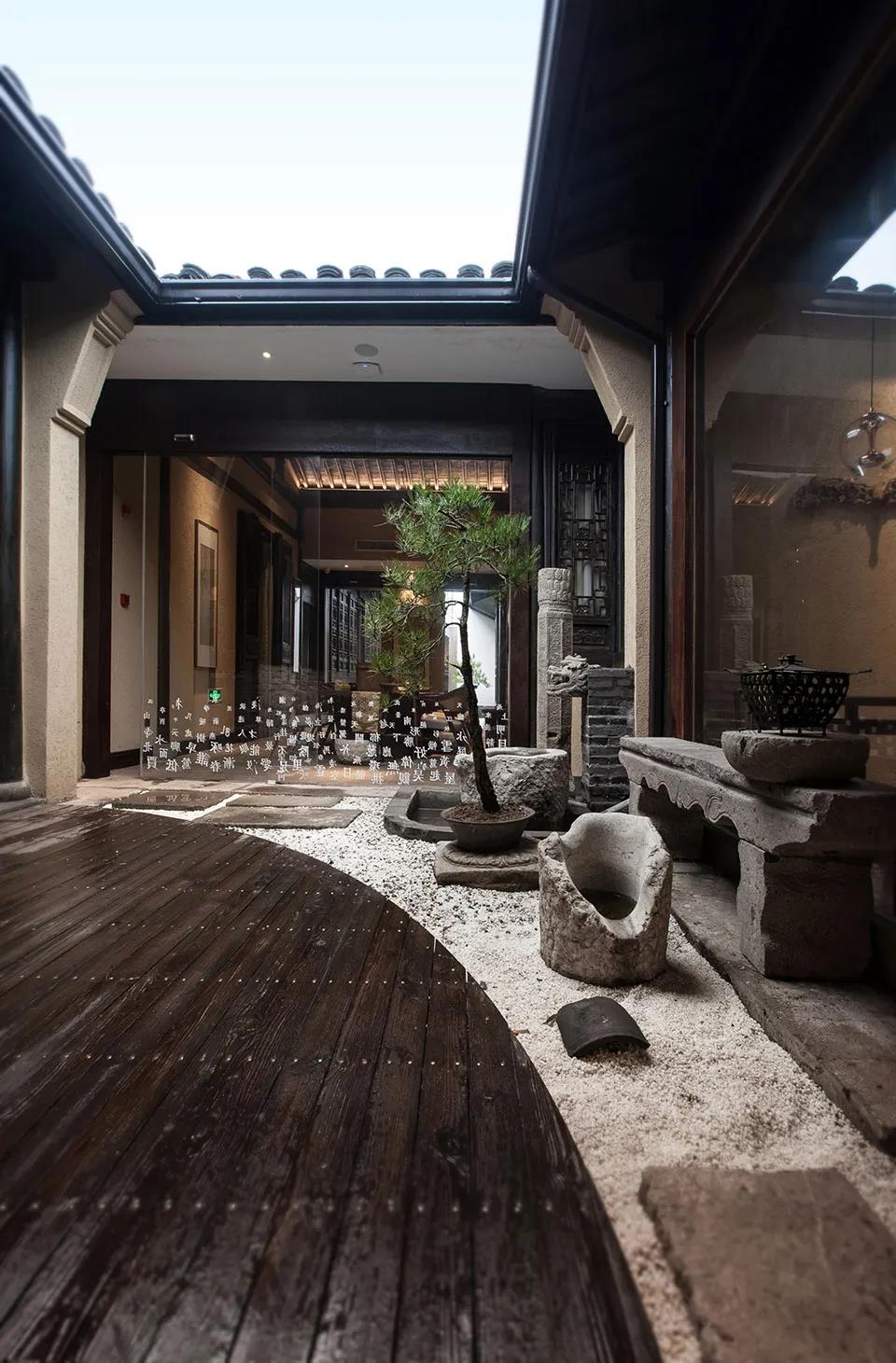 小镇拙朴而沉稳,陡峭的屋面可以更好的营造光影,天井采用进口菠萝格原木,打造徽居中典型的四水归堂,仿佛是一场古今的对话。
