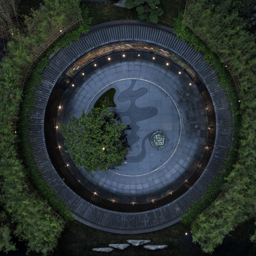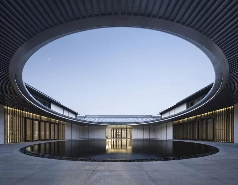 设计将四周檐廊处理为圆形,圆形的天井和四方的庭院,宜设而设,精在体宜,同时体现了中国文化中“天圆地方、天人合一”的朴素哲学,庭院中汇聚雨水而成的水景在有水和枯水期,传达出温润和寂寥的不同气质。