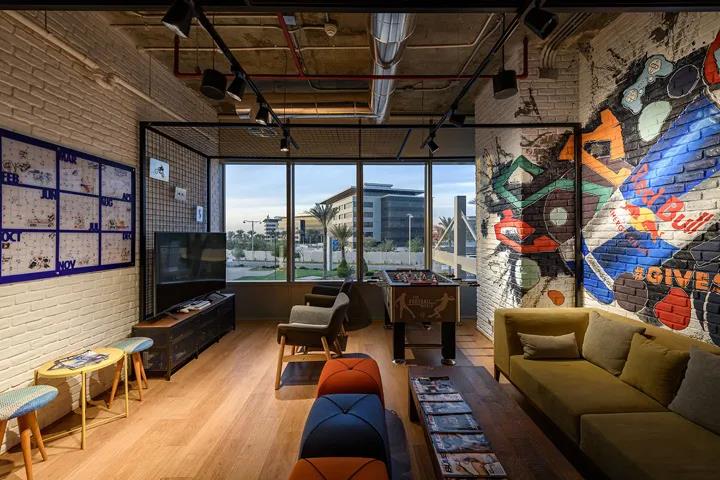 功能饮料品牌红牛Red Bull,在埃及开罗新设了一处办公室。粗犷的混凝土楼板映衬着各式极限运动的涂鸦创作,带来强烈的视觉冲击和满满激情能量。本案由建筑和室内设计公司Eklego Design设计团队打造。