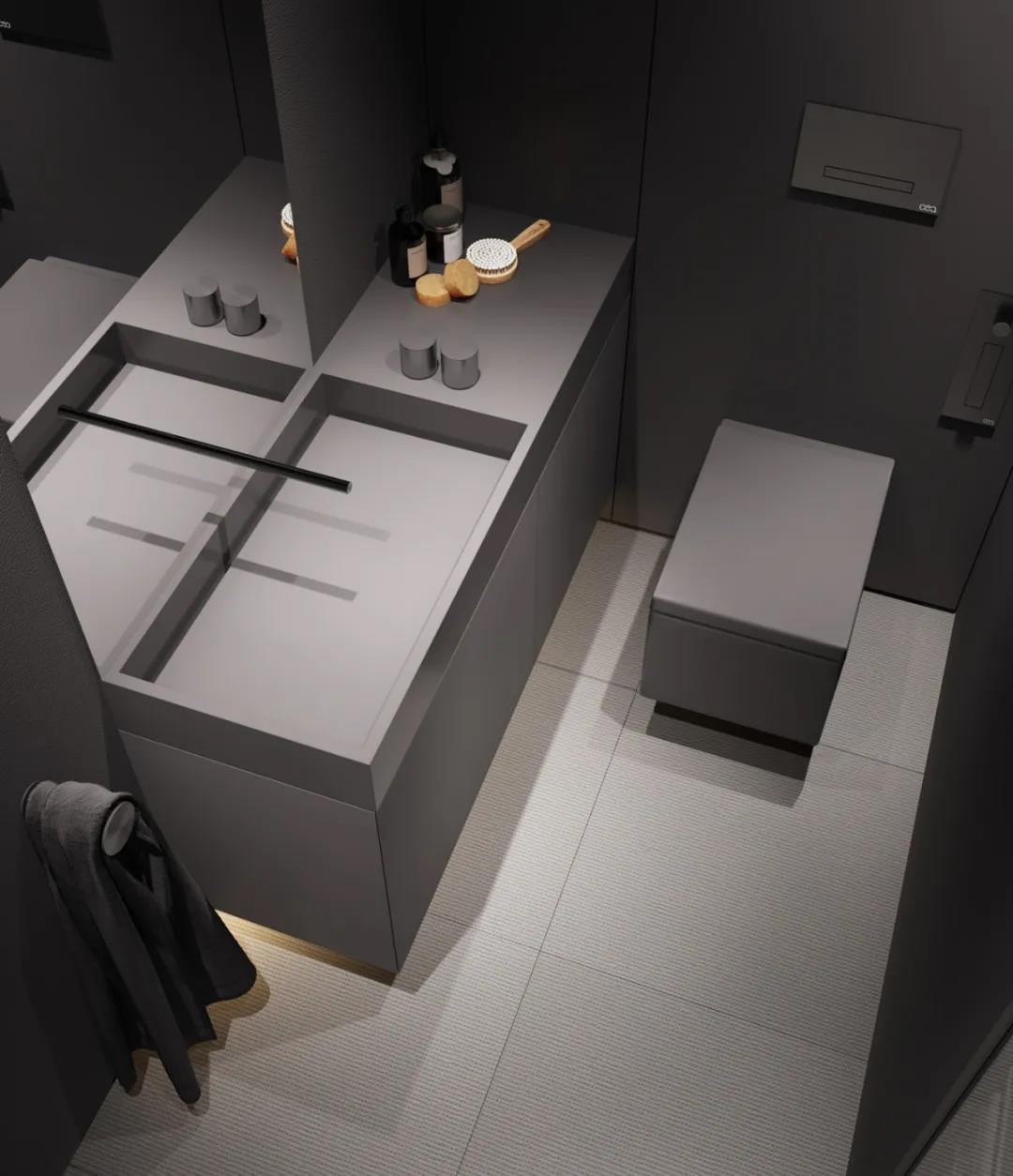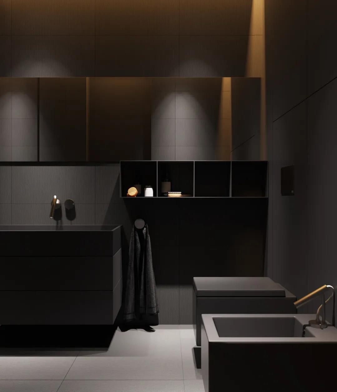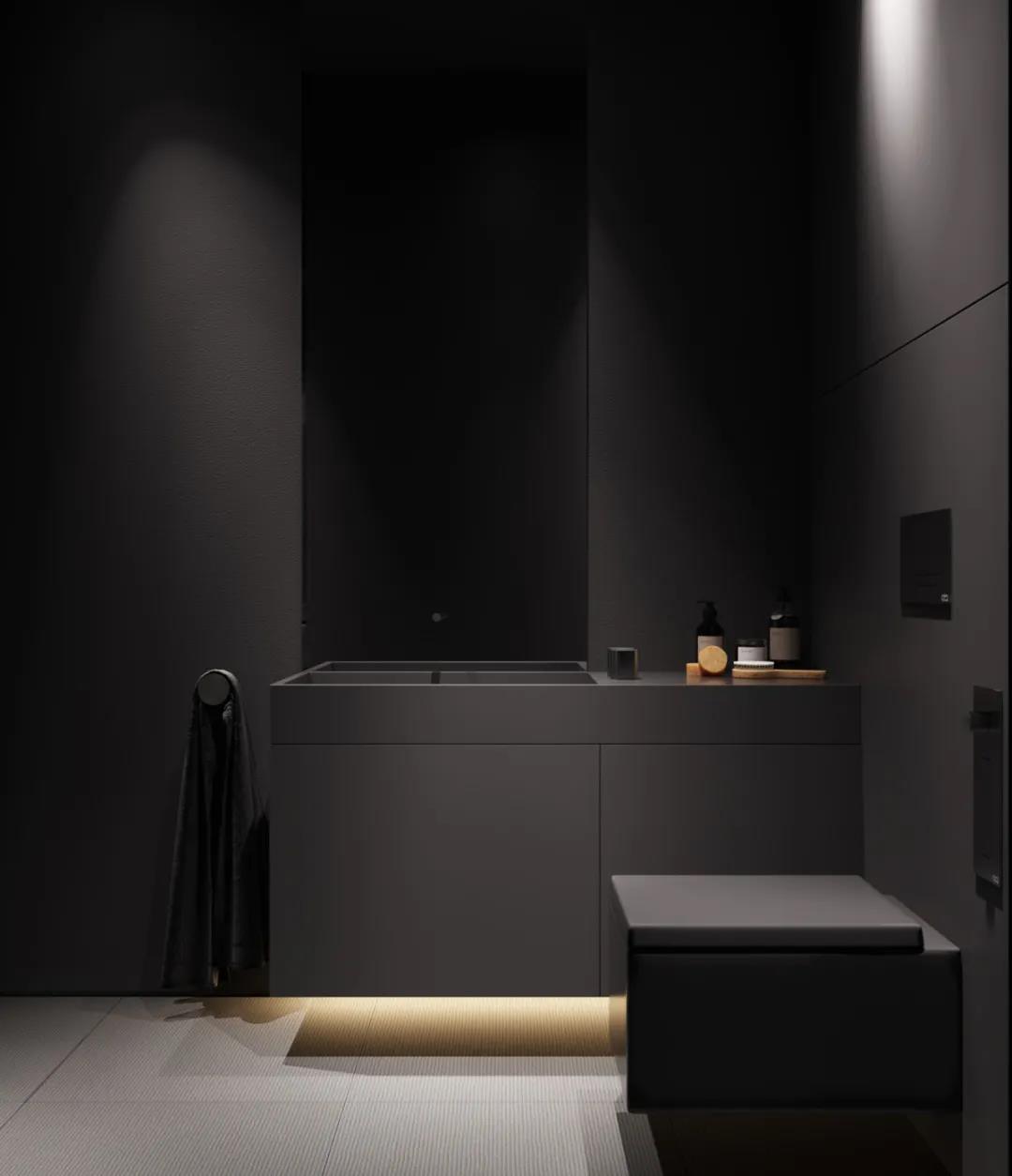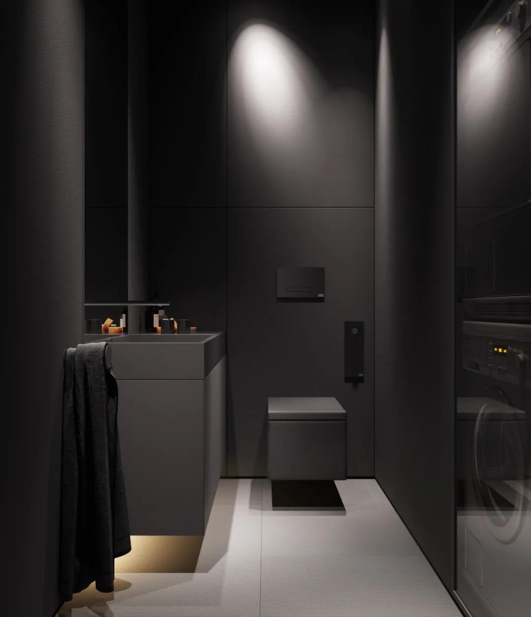 卫生间黑白灰的绝妙搭配,从凝重的黑到轻盈的白,空间似乎都逐渐舒展开来一般。看似明亮张扬,但却依旧有所收敛,这可能就是高级黑的迷人之处了。