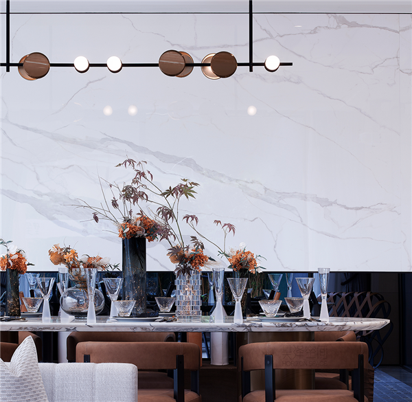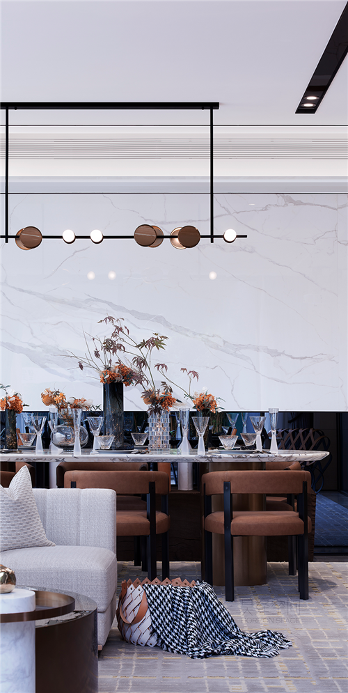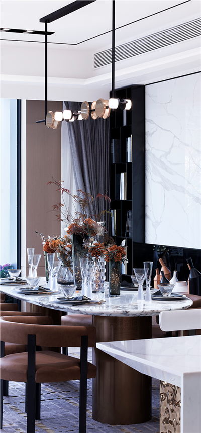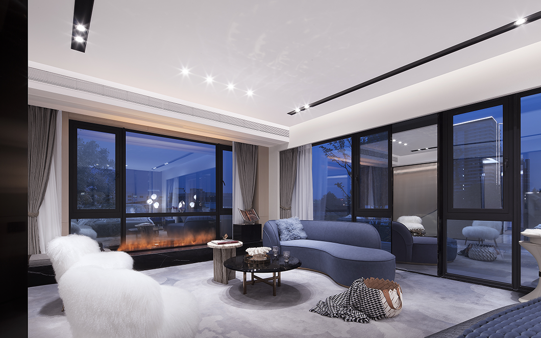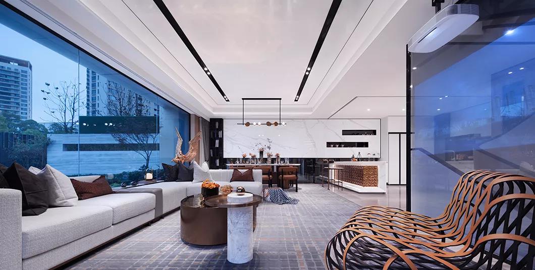 客餐厅采用大横厅的设计,大空间尺度的客厅和超长的景观阳台完美融合。
