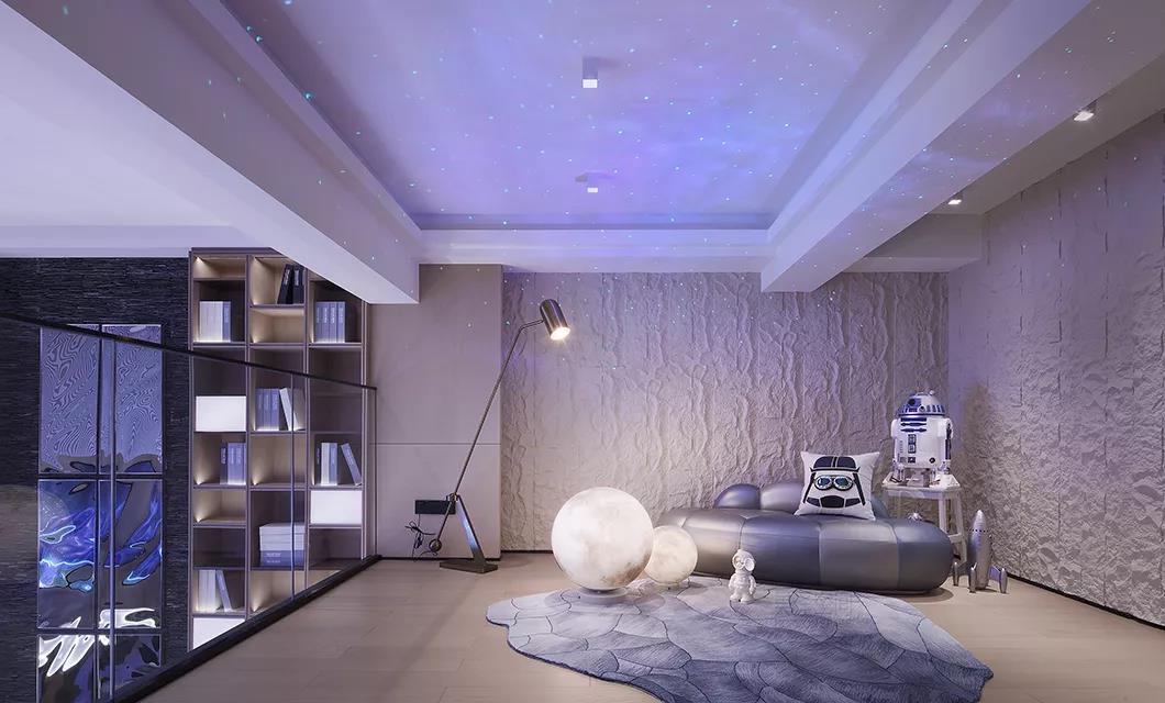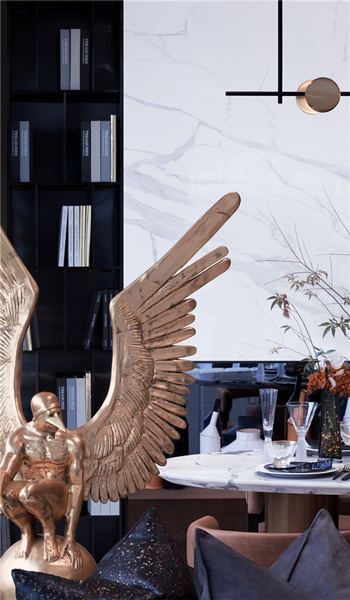 飞行少年艺术雕塑静静的蹲坐在窗边,如静思,如凝望,成为了客餐厅的视觉焦点。