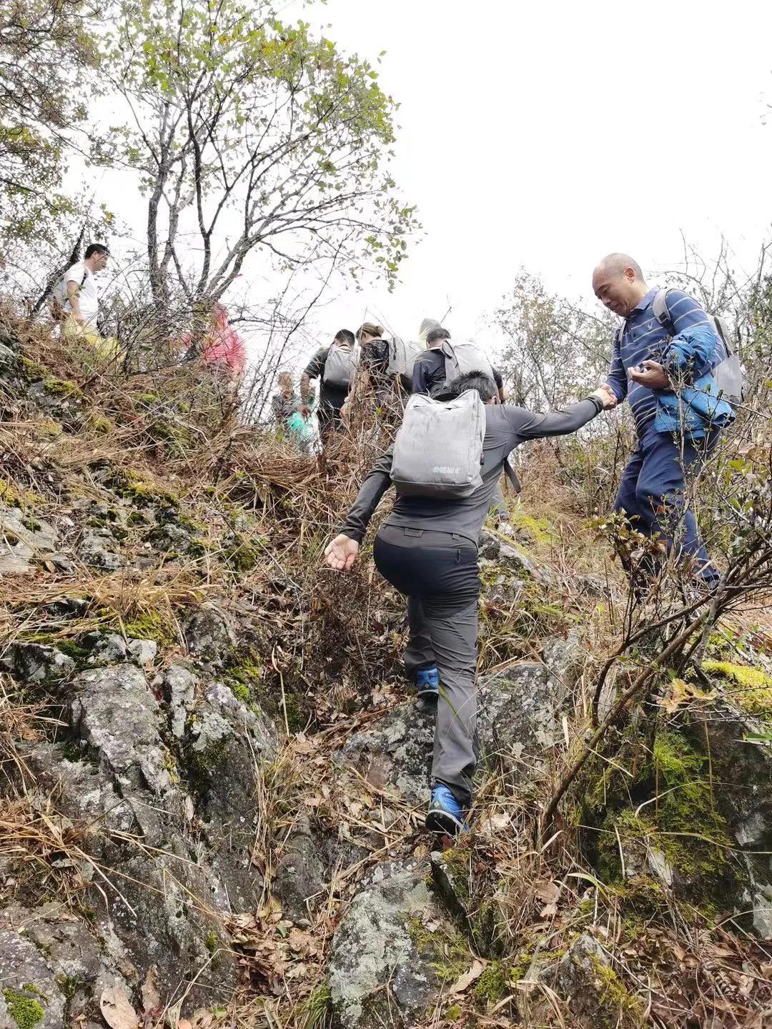 初时攀登大家热情高涨,一路交流一路向顶峰出发,离目标越近山路越来越不好走,但是大家仍然互相扶持坚持前行,快到达山顶时还下起了小雨,经过互相鼓励和毅力坚持,最后全部人到达了1200米以上的高度,8人登上1453.7米的顶峰,路途艰辛加上天气影响增大了登顶难度,但是通过本次活动大家感受到了共同克服困难、永不放弃的精神。