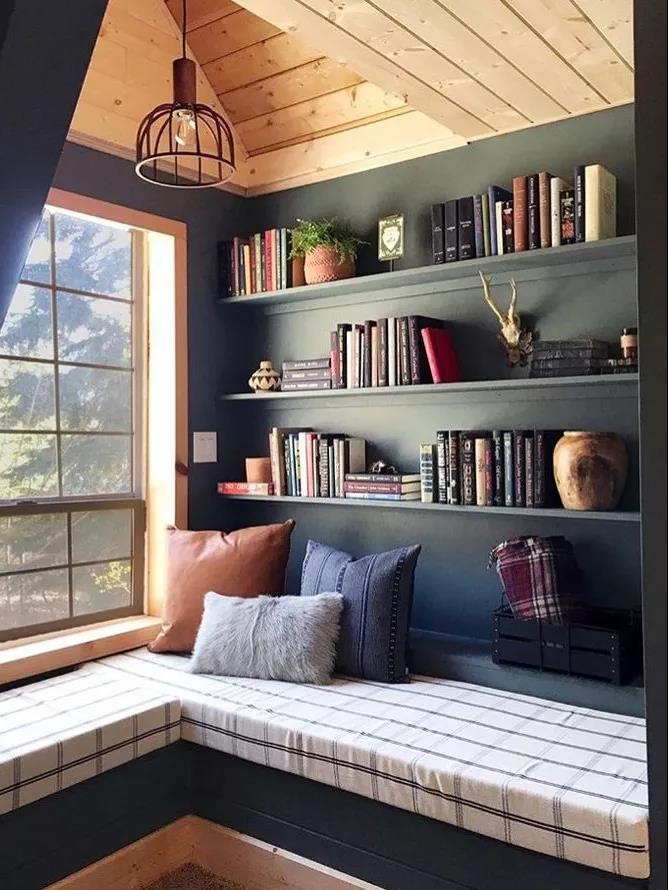 目前小型图书室是一种新的流行趋势。以往书本都放在书房,而现在家里的每个空间都可以设置书架。