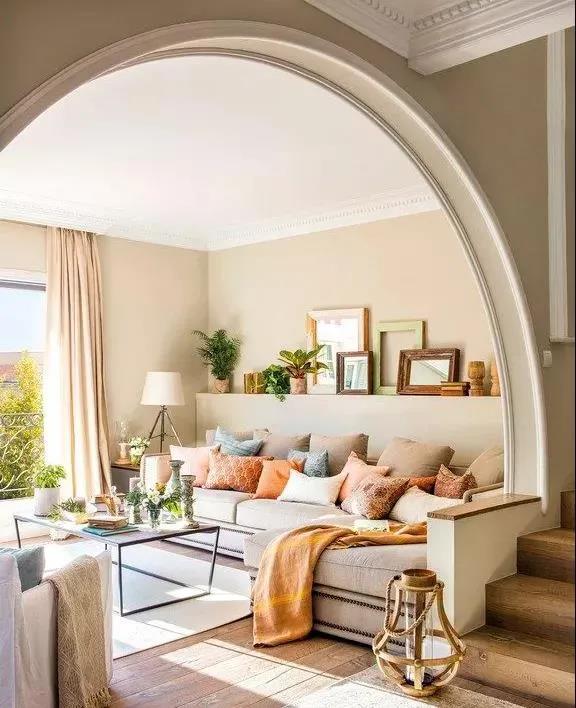 弧形墙线条流畅优美,视觉更柔和,比起普通的墙,它的造价也会有所提高,建造难度也更大。