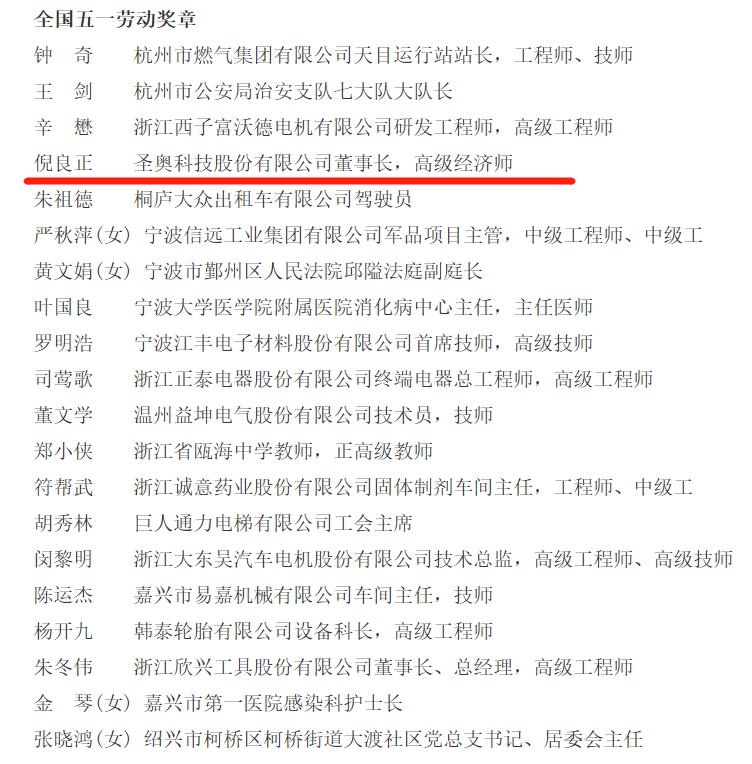 浙江省委、省政府授予 倪良正“浙江省劳模”称号